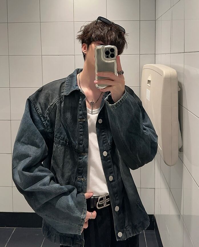 タイダイ デニム シャツ ジャケット 秋 冬 韓国 メンズ